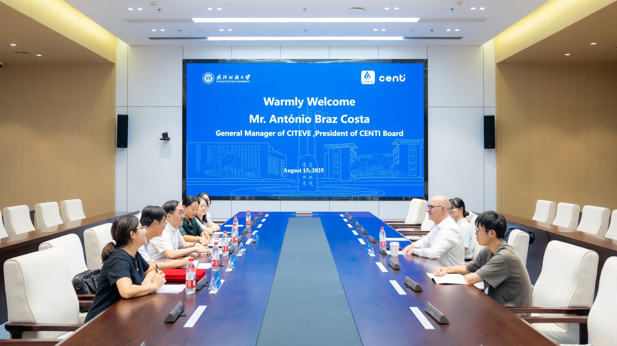 8月15日,葡萄牙纺织服装技术中心(CITEVE)总经理、葡萄牙纳米科技与先进材料研究中心(CENTI)董事会主席António Braz Costa先生到访365官网。校党委书记徐卫林、校长傅欣在阳光校区建全会堂崇真厅会见了葡萄牙的客人,并签署合作备忘录。国家地方联合工程实验室、国际处相关负责人参加会谈。