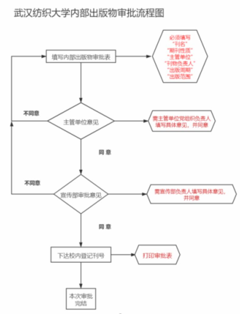 校内出版物实行申报审批、登记备案制度。出版单位必须按规定向主办单位和主管部门办理登记、审批手续。校内各单位、部门创办的出版物,由校党委宣传部直接审批并备案。校级学生组织创办的出版物由学生部、研工部、校团委审核,其他学生组织创办的出版物由所属学院党委、党总支审核,报校党委宣传部审批并备案。如有两个及以上单位合办出版物的,须确定牵头单位,由相应单位党委、党总支预审,报党委宣传部审批并备案。